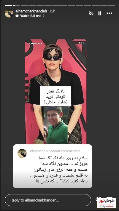 طوطیانیوز: تصویری از استوری جدید الهام چرخنده در واکنش به پخش مجدد سریال آوای باران را مشاهده بفرمایید.