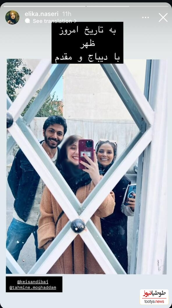 سلفی خلاقانه کیسان دیباج و الیکا ناصری در آینه درِ حیاط قدیمی+عکس/صمیمیت باران و نیما در بیرون از سریال...