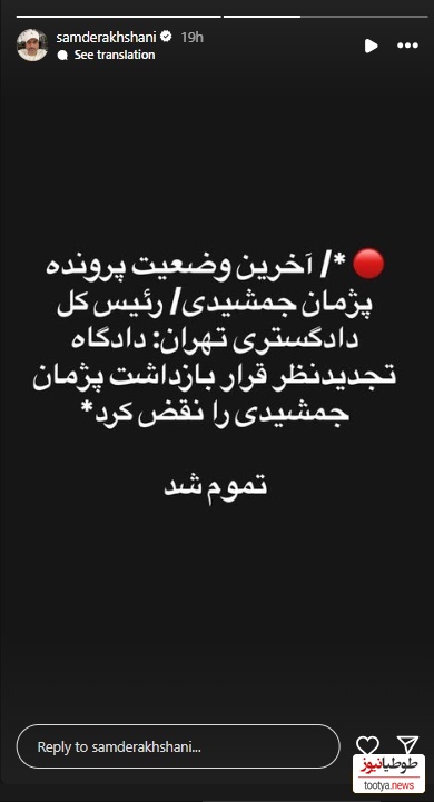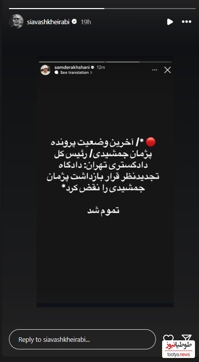 طوطیانیوز: تصاویری از استوری بازیگران پس از خبر آزادی پژمان جمشیدی را مشاهده بفرمایید.