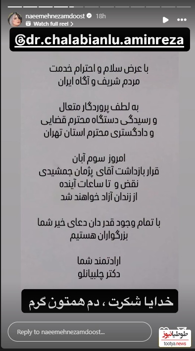 تصاویری که تماشا کردید مربوط به استوری بازیگران در خصوص آزادی پژمان جمشیدی می باشد.