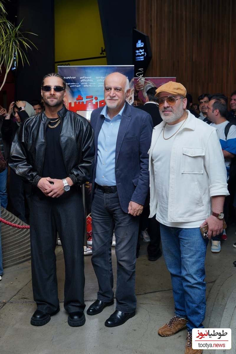 استایل امیر مقاره در اکران مردمی «شاه نقش» که همه نگاهها رو به سمت خودش جلب کرد؛ ترکیب شلوار راه راه با کت چرم و موهایی بافته شده! +ویدیو