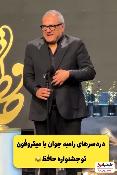 طوطیانیوز:ویدئویی از حضور رامبد جوان در جشن حافظ در فضای مجازی وایرال شده است که میکروفن با او یاری نمی کند تا بتواند صحبت کند.