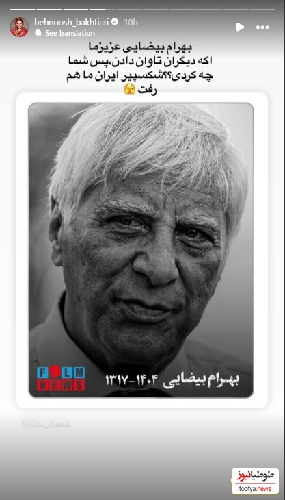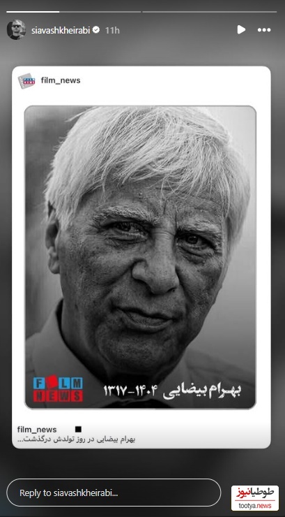 طوطیانیوز: بهرام بیضایی کارگردان سرشناس سینما و تئاتر ایران در روز تولدش درگذشت.