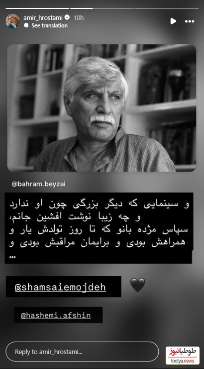 غم و اندوه بازیگران و هنرمندان از خبر درگذشت بهرام بیضایی؛ شهاب حسینی، سام درخشانی، مونا کرمی، بهنوش بختیاری، پژمان بازغی و...+فیلم و عکس