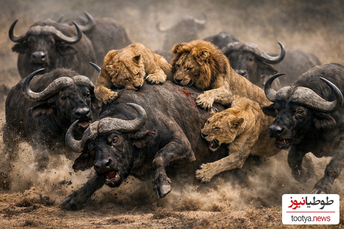 طوطیا نیوز:در این نبرد نفسگیر، هیچچیز از پیش تعیینشده نیست. اگر شیرها هماهنگ باشند، شانس پیروزی دارند؛ اما اگر گاومیشها متحد بمانند، حتی سلطان جنگل هم عقب مینشیند. این تقابل، نمایشی واقعی از قانون بیرحم طبیعت است: بقا فقط برای قویترها نیست، برای هوشمندترهاست.