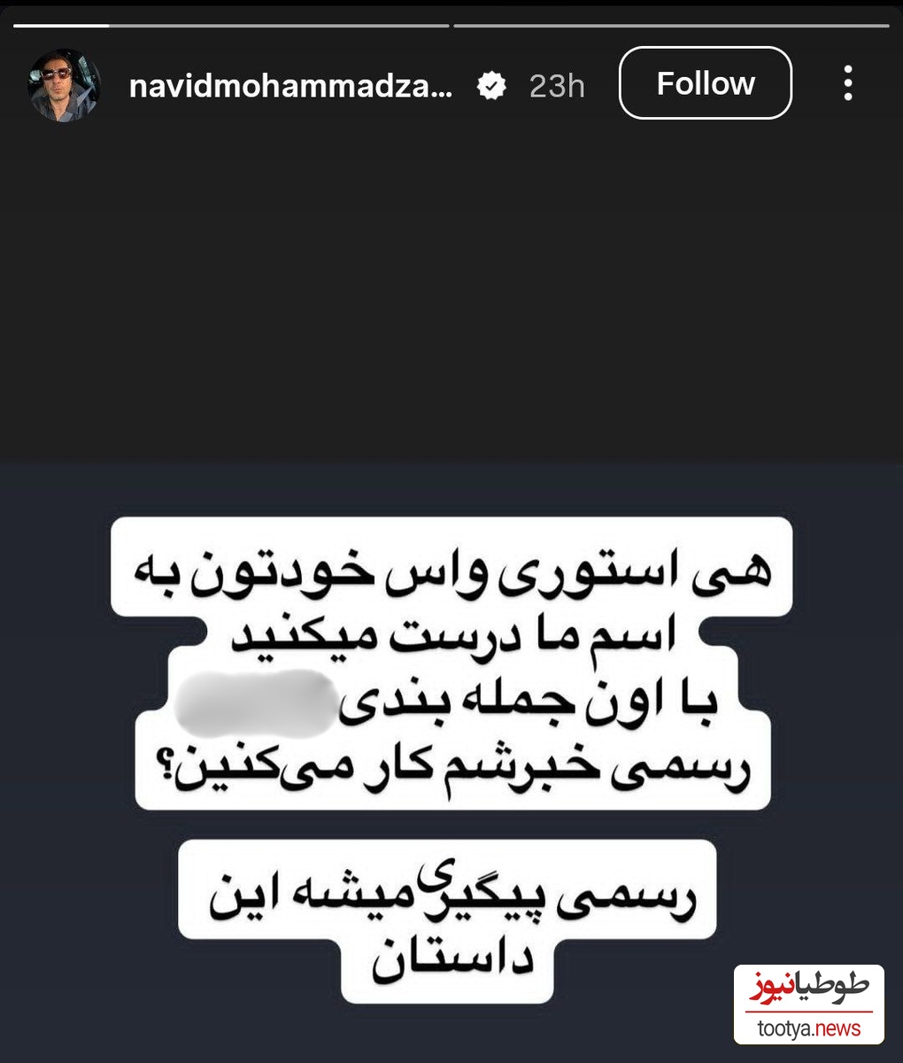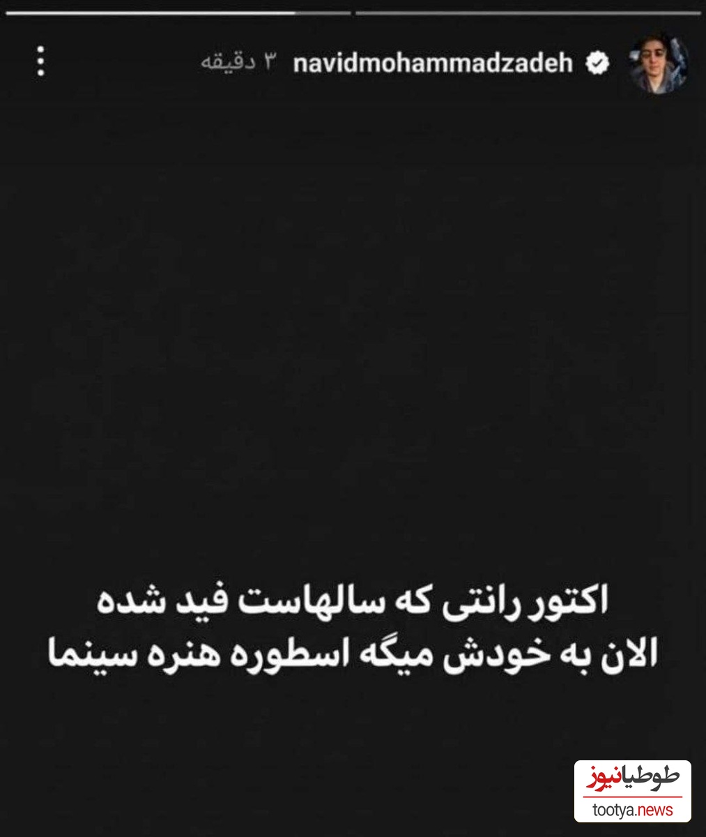نوید محمدزاده با این استوری خشم خودش از شایعه استوری نسبت به ترانه علیدوستی را اینگونه اعلام کرد+عکس