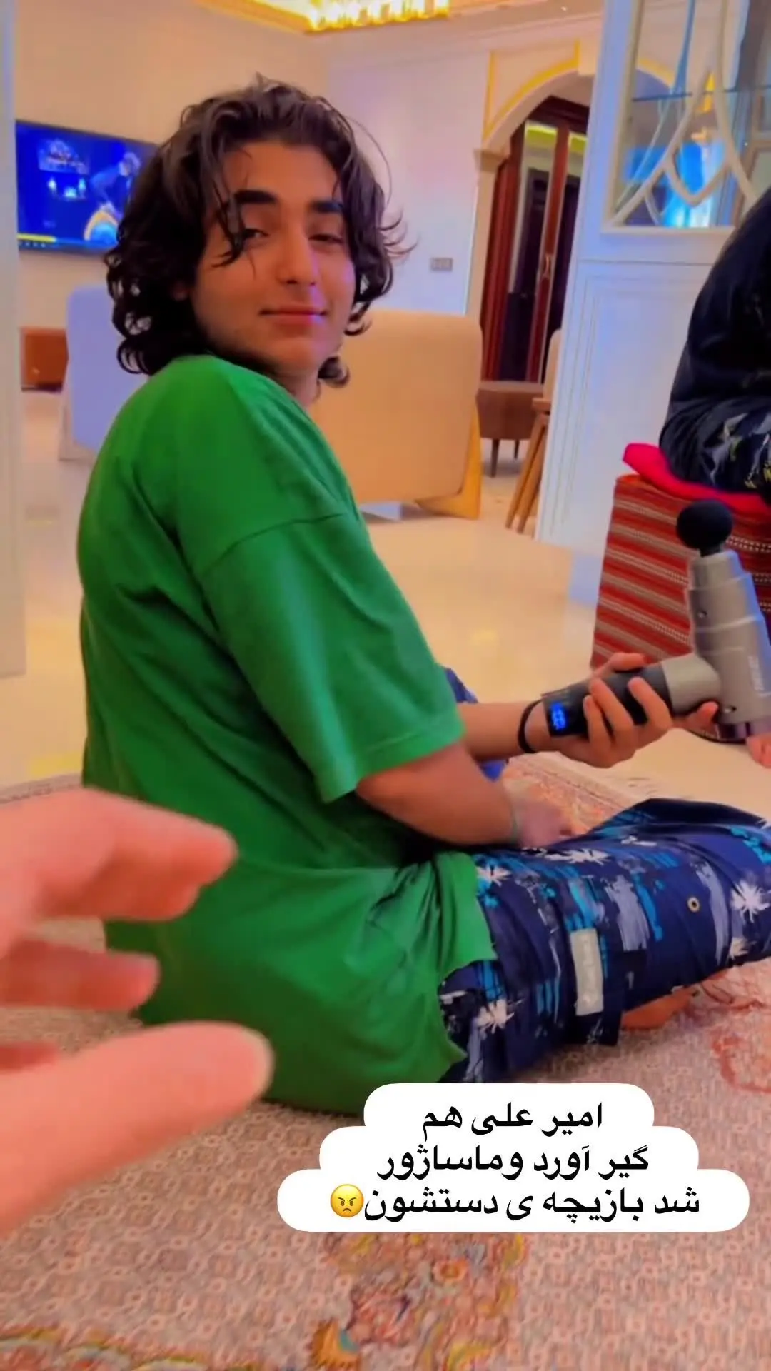 خلاقیت خندهدار و بامزه پسران ستاره سادات قطبی در استفاده از دستگاه ماساژور به جای میکروفون😂+ویدئو