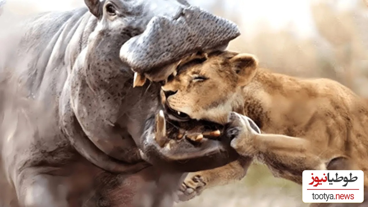 طوطیانیوز:تصویری دیدنی از حمله یک اسب آبی به 3 شیر در حال عبور از رودخانه همه را شوکه کرد.