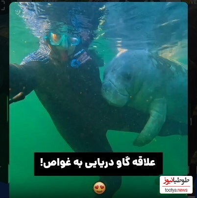 (ویدئو) عاشقترین گاودریایی که تابحال دیده اید!/ علاقه عجیب گاو دریایی به غواص/ ببینین چطوری محکم پاشو بغل کرده ولم نمیکنه!