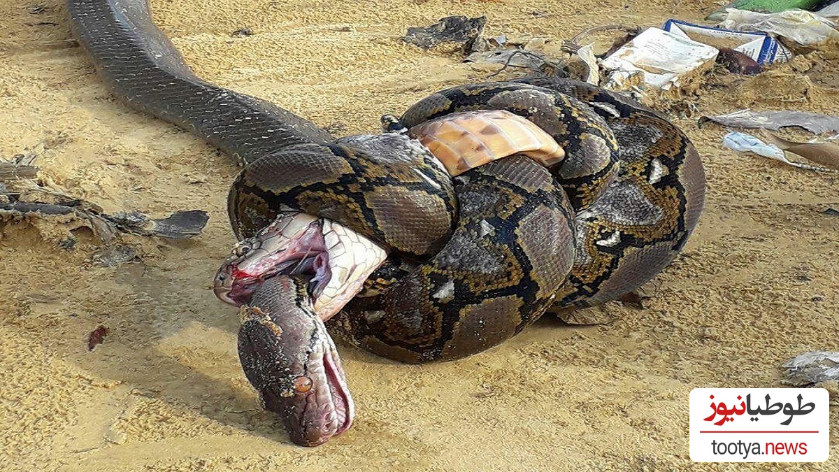 مستند حیات وحش حیوانات/ راز بقا، این داستان: لحظه نفسگیر بلعیده شدن یک مار توسط هم نوعش/لعنتی انگار داره اسپاگتی میخوره