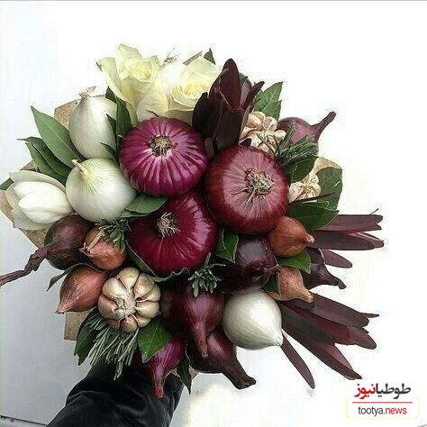 خلاقیت خندهدار گلفروش محله برای تزیین دسته گل خواستگاری با پیاز و سوخاری مرغ!+عکس