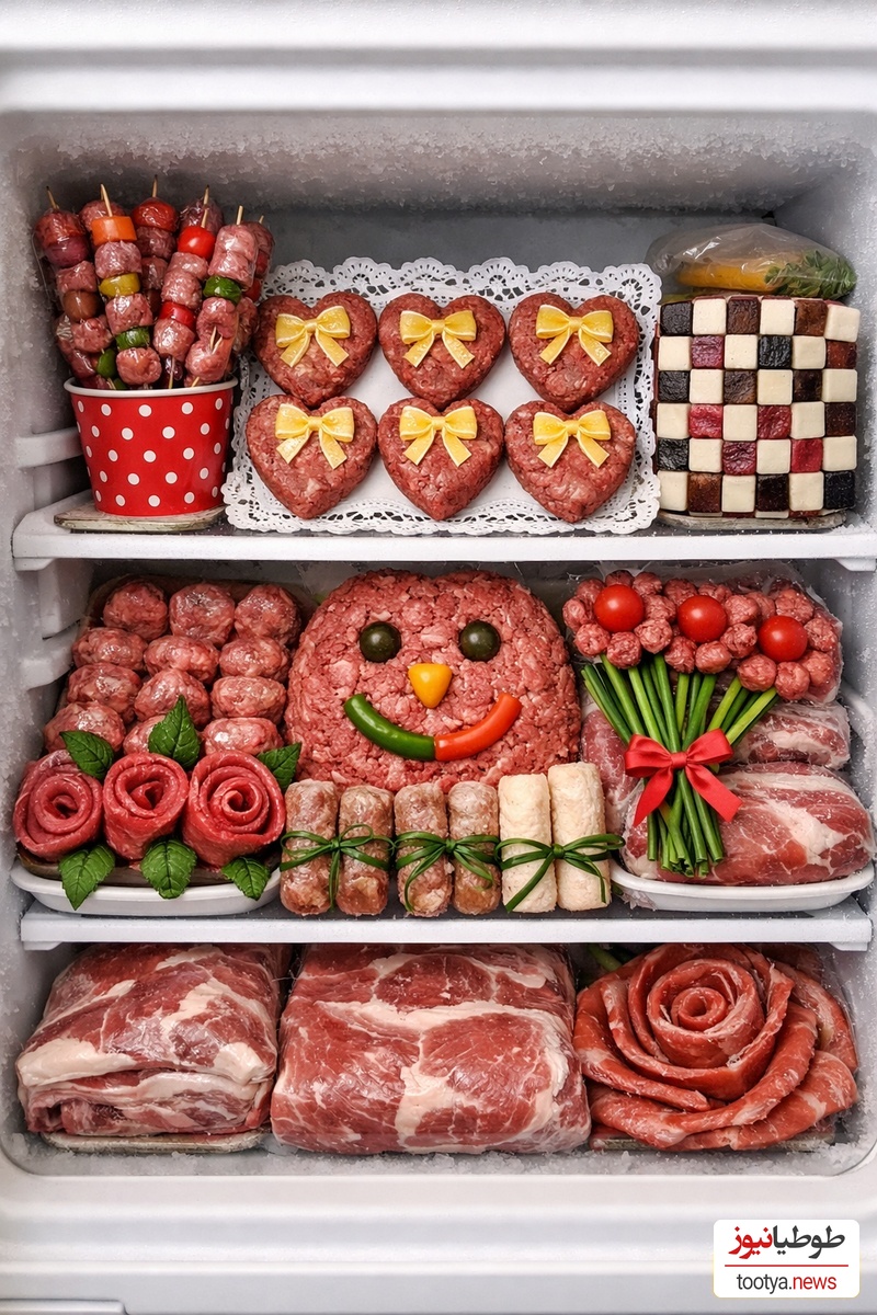 طوطیا نیوز:یک عروس تبریزی با خلاقیتی بامزه برای خودشیرینی نزد خانواده همسر، گوشتهای فریزر را به شکل تزئینی چیده و با این ابتکار ساده، به سوژه خندهدار و پربازدید در فضای مجازی تبدیل شده است.