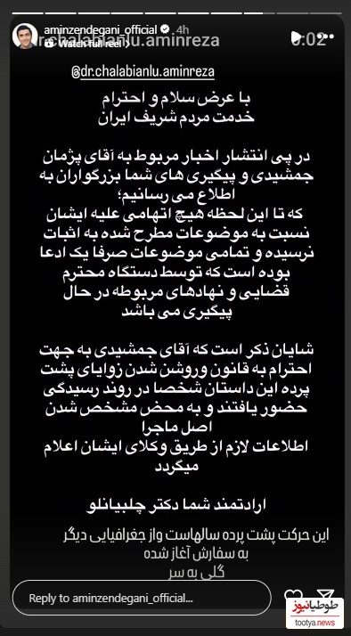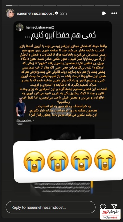 طوطیانیوز: تصاویر و ویدیویی از استوری بازیگران نسبت به اتهام تجاوز که به یکی از بازیگران نسبت داده شده است را مشاهده بفرمایید.