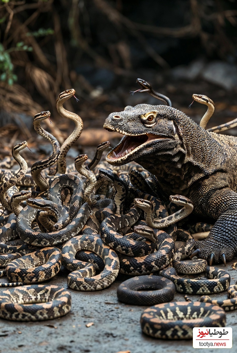 طوطیانیوز:در یکی از صحنههای نفسگیر مستندهای حیاتوحش، بیش از صد مار سمی در حملهای کمسابقه، Komodo dragon را هدف قرار میدهند؛ نبردی تکاندهنده که بار دیگر قانون بیرحم بقا در طبیعت را به تصویر میکشد.