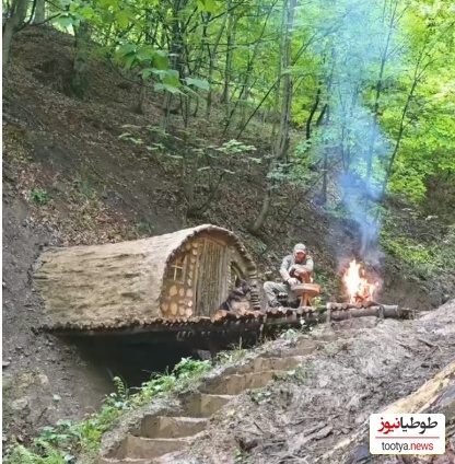 ابتکار خلاقانه هنرمند باذوق در تهیه کلبه چوبی در وسط جنگل با چوب درختان+فیلم