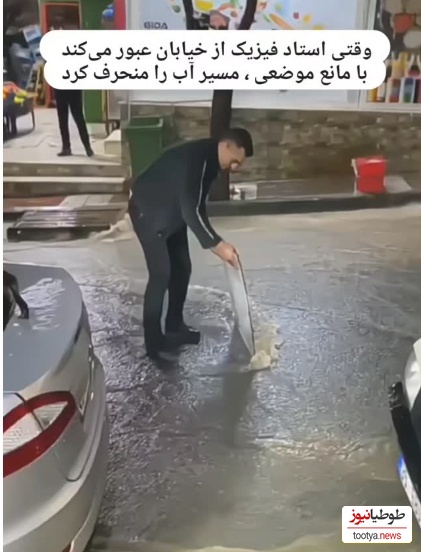وقتی نمیخوای کفشهات خیس بشه؛ ترفند عجیب و غریب برای دور زدن آبگرفتگی توسط این معلم فیزیک!👌+ویدیو